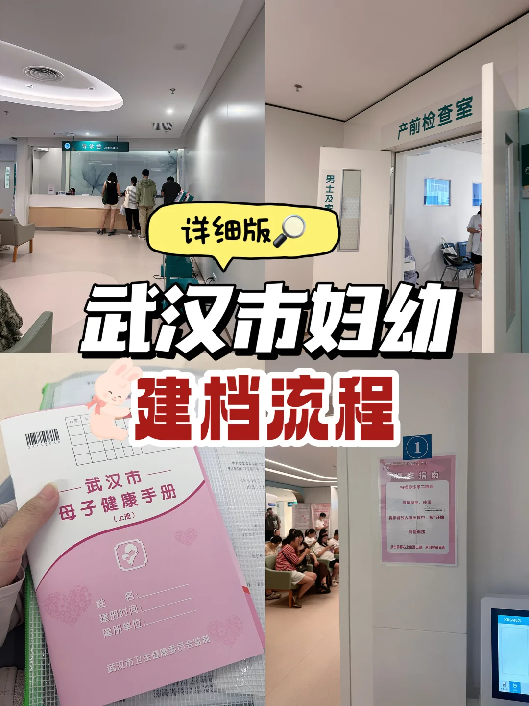 2️⃣进去做完NT拿结果,就可以网上挂号了(我挂了个9点半的号),然后去找医生说建档。医生这时会看你的NT结果,然后给你开个单子去二楼的产前检查室体检(查血压/身高体重/听胎心,听完胎心后会给你这个武汉市母子健康手册)注意这时要返回去找医生哦。