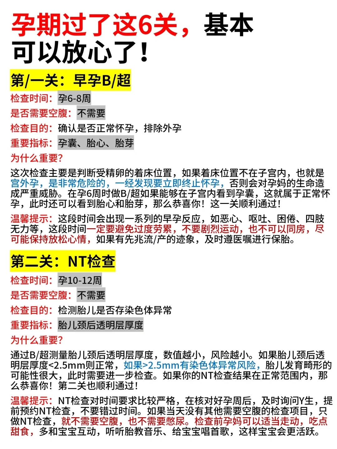 ‼️第--关:早孕B/超👉检查时间:孕6-8周👉是否需要空腹:不需要👉检查目的:确认是否正常怀孕,排除外孕👉重要指标:孕...
